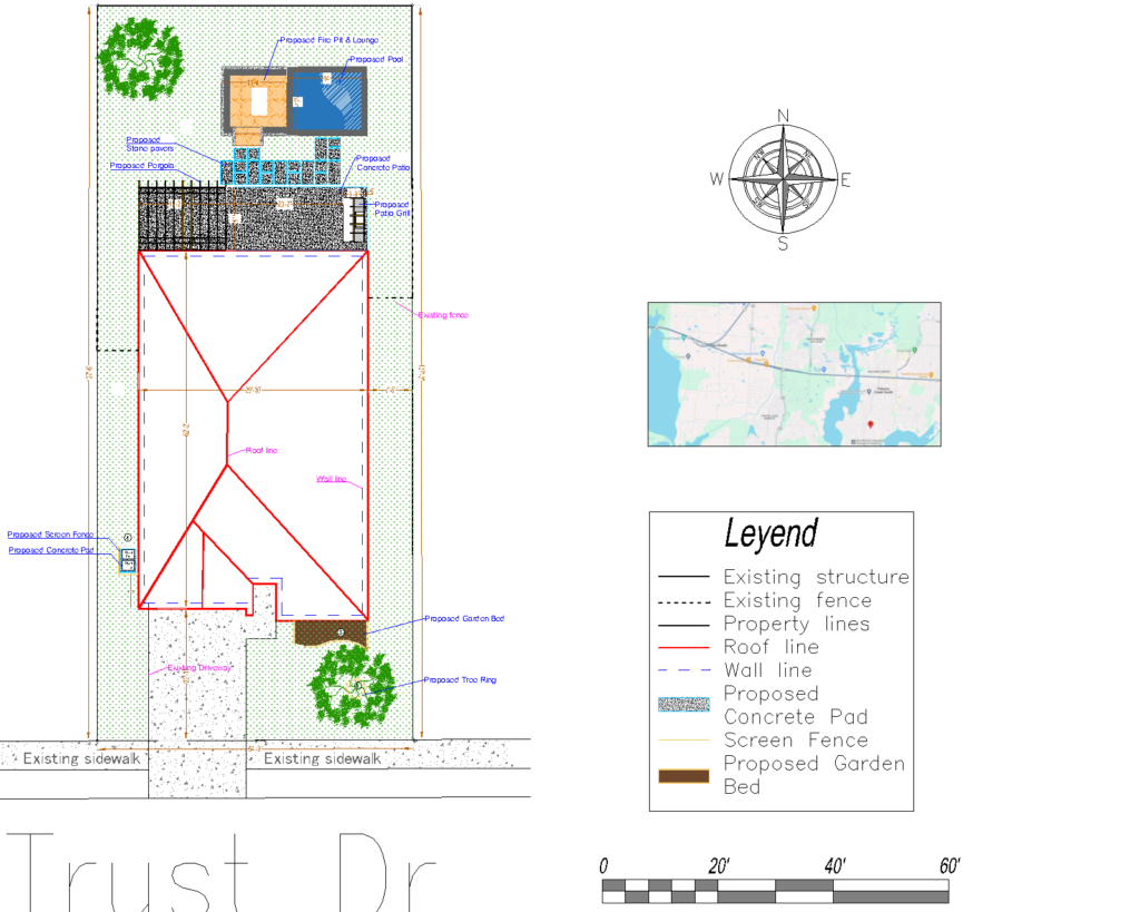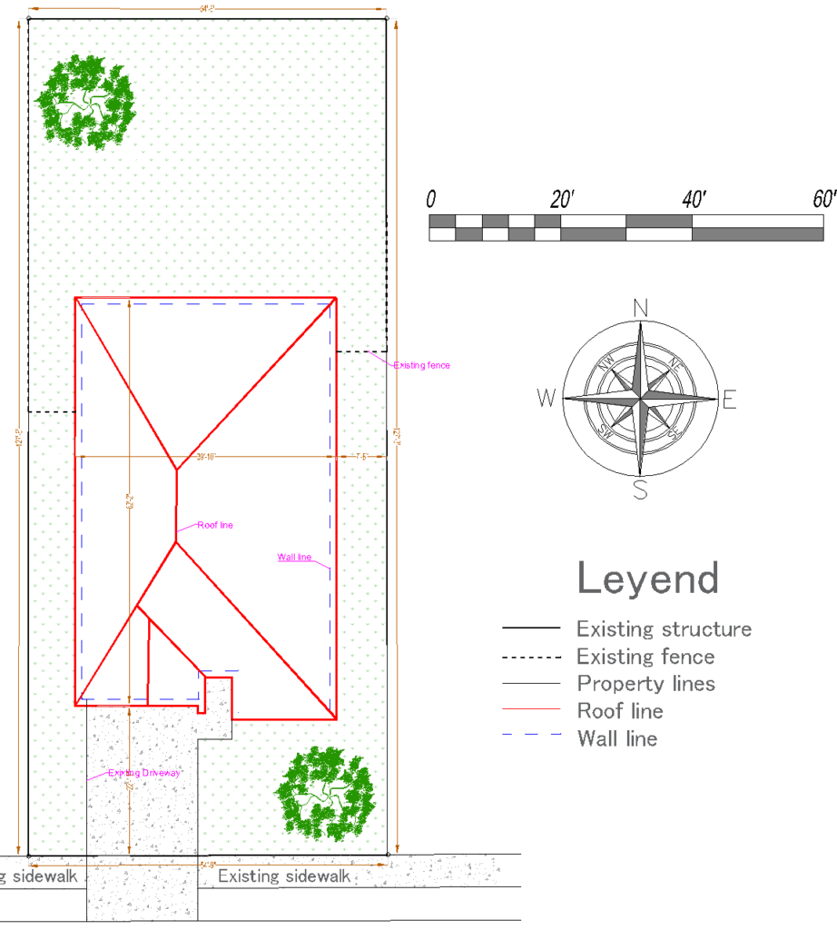 We will send you the first draft of the site plan for review. You can sketch any required changes on the design and send it back to us for a free revision if any are needed, including updating measurements or adding items that are missing because of tree cover.